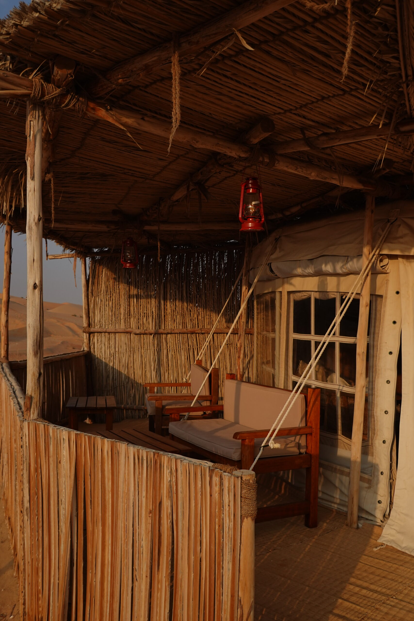 Designed to look like a traditional Middle Eastern house from the 1800s, using imported African wood, the central camp has a dining room, bar, indoor and outdoor seating, and a majlis. This is where you convene for the activities.